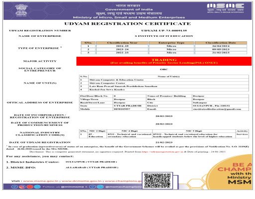 SIITE is a renowned computer training organization that has been providing quality education since 2019. We are an ISO certified organization and registered with the Government of India. Our mission is to empower individuals with the necessary skills and knowledge in the field of computer education.